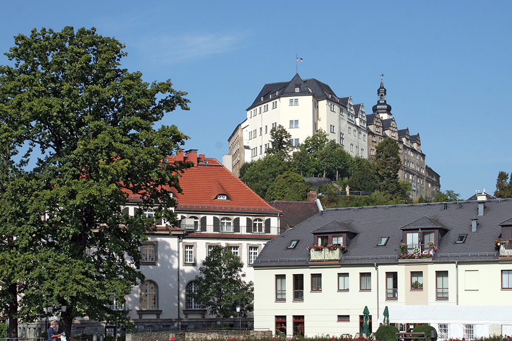 Die Greizer Altstadt schließt sich südöstlich direkt an den Schlossberg an.